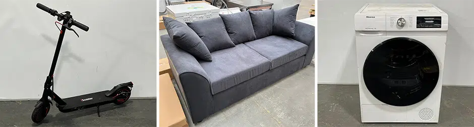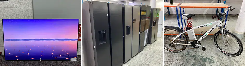 A wide range of stock to include white goods, bicycles, sofas, TVs, monitors, and much more...