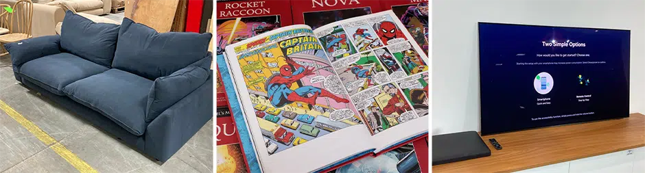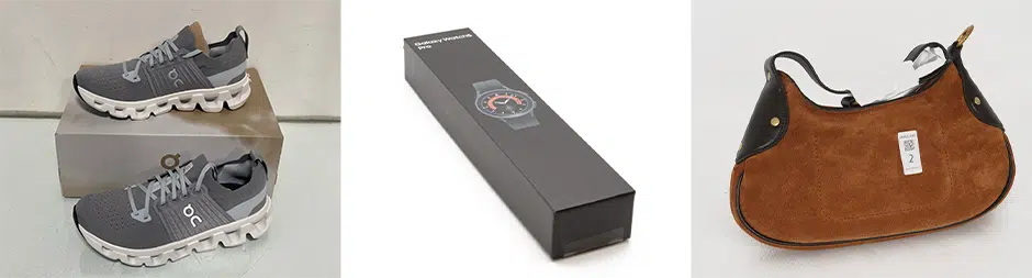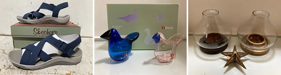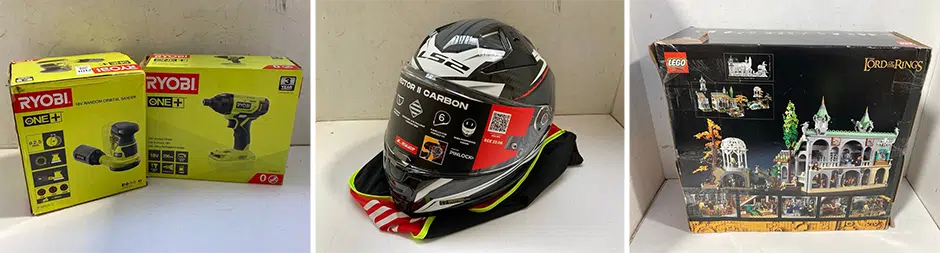A selection of items to include power tools, coffee machines, toys, clothing, footwear, lighting, games, candles, headphones, speakers, air fryers, microwaves, bedding, cookware, furniture, bags, pet food, auto parts, jewellery, luggage.