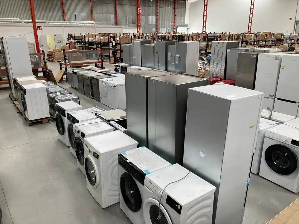 Retail returns, overstocks, and ex-display goods include a wide range of home appliances such as ovens, washing machines, and refrigerators. The sale also includes a wide variety of furniture such as sofas, shoe racks, chairs, desks, garden tables, and swimming pools.