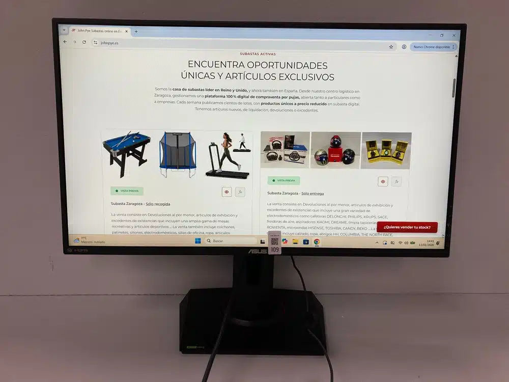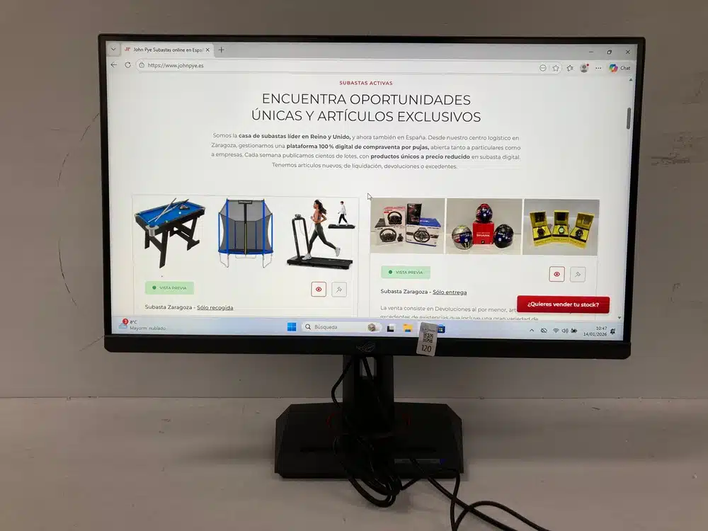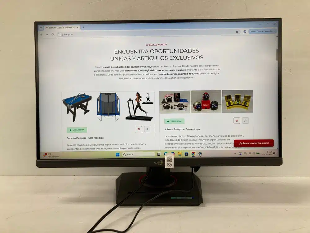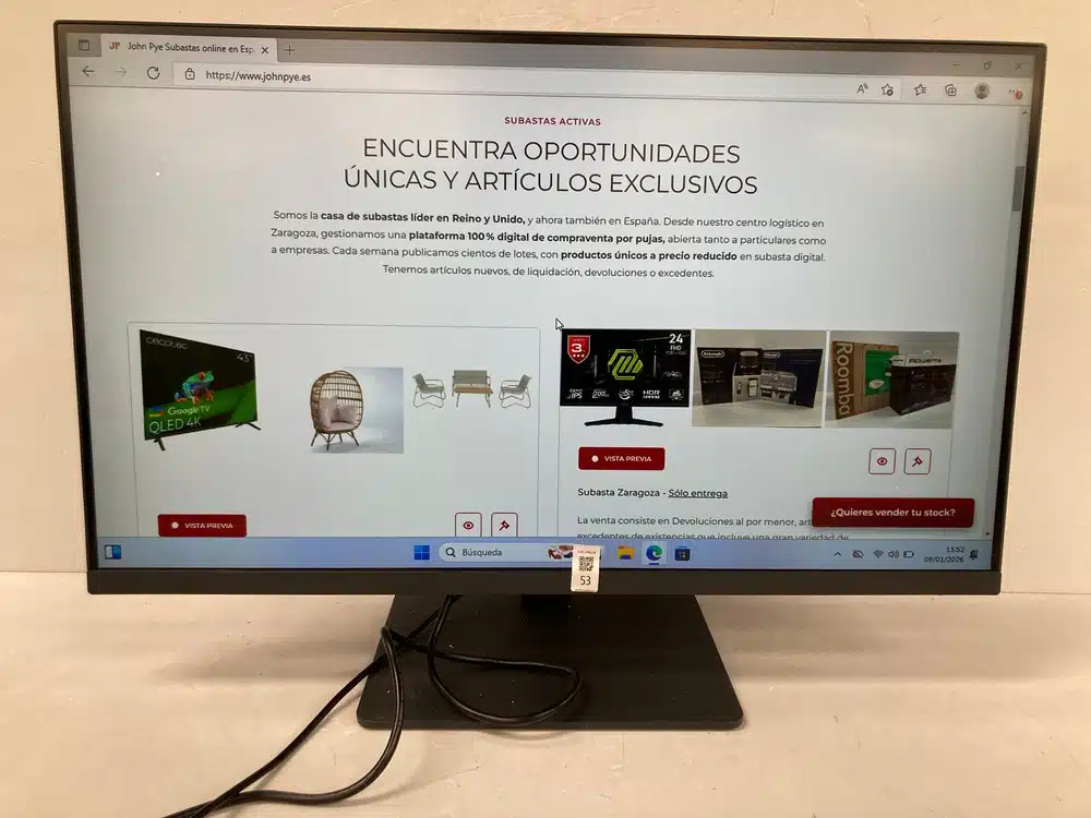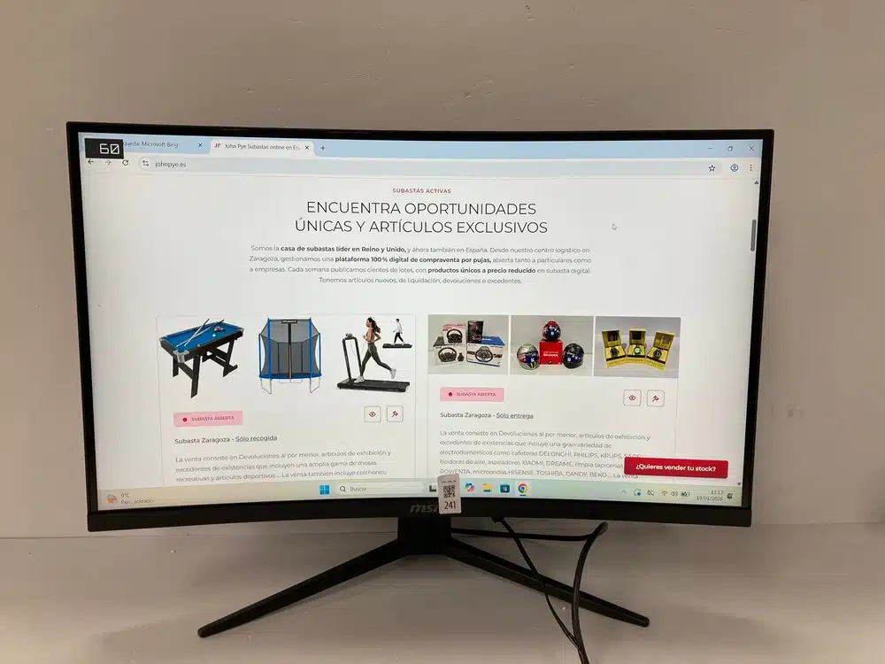 The sale consists of retail returns, display items and surplus stock, including a wide range of monitors from brands such as MSI, SAMSUNG, LG, ALIENWARE, ASUS, MARS GAMING, PHILIPS, AOC, LENOVO, HP, XIAOMI, BENQ, KOOURI, etc.