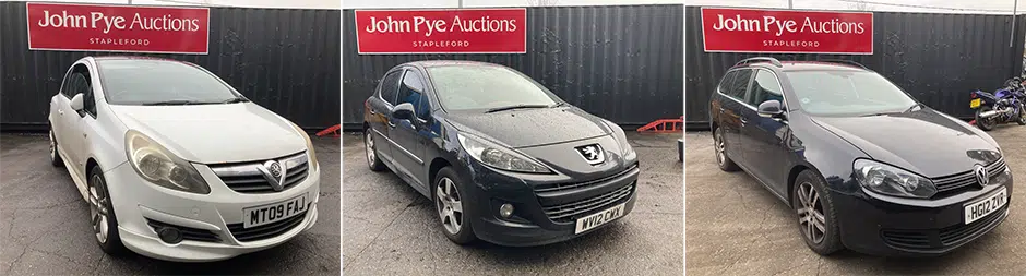 Range of Vehicles available for Public Auction inc. Seized, Bankrupt & Repossessed Vehicles Located Across the UK: Ford, Vauxhall, Fiat, Rover, Alfa Romeo, Nissan, Peugeot, Citroen