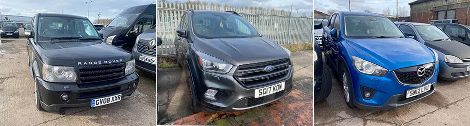 Range of Vehicles available for Public Auction inc. Seized, Bankrupt & Repossessed Vehicles Located Across the UK: Ford, Vauxhall, Fiat, Rover, Alfa Romeo, Nissan, Peugeot, Citroen