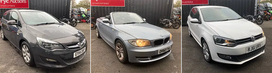 Range of Vehicles available for Public Auction inc. Seized, Bankrupt & Repossessed Vehicles Located Across the UK: Ford, Vauxhall, Fiat, Rover, Alfa Romeo, Nissan, Peugeot, Citroen
