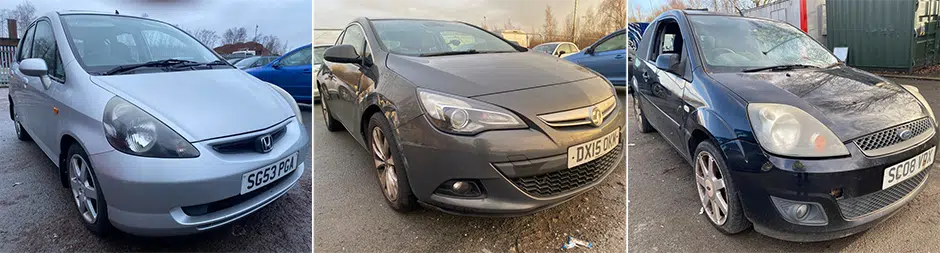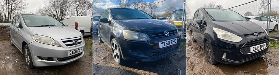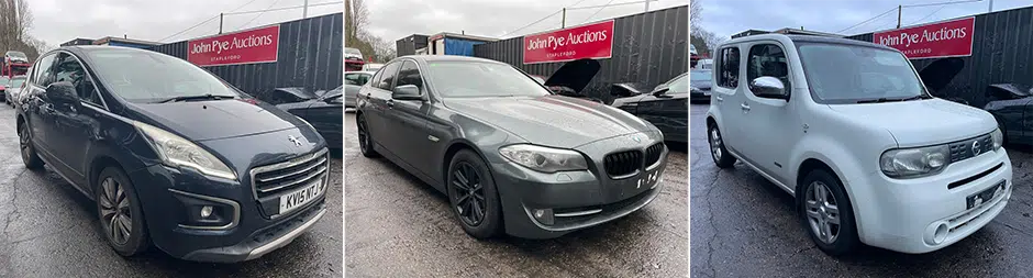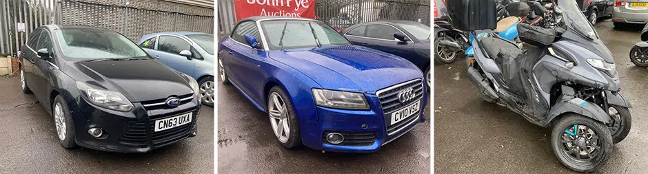 Range of Vehicles available for Public Auction inc. Seized, Bankrupt & Repossessed Vehicles Located Across the UK: Ford, Vauxhall, Fiat, Rover, Alfa Romeo, Nissan, Peugeot, Citroen