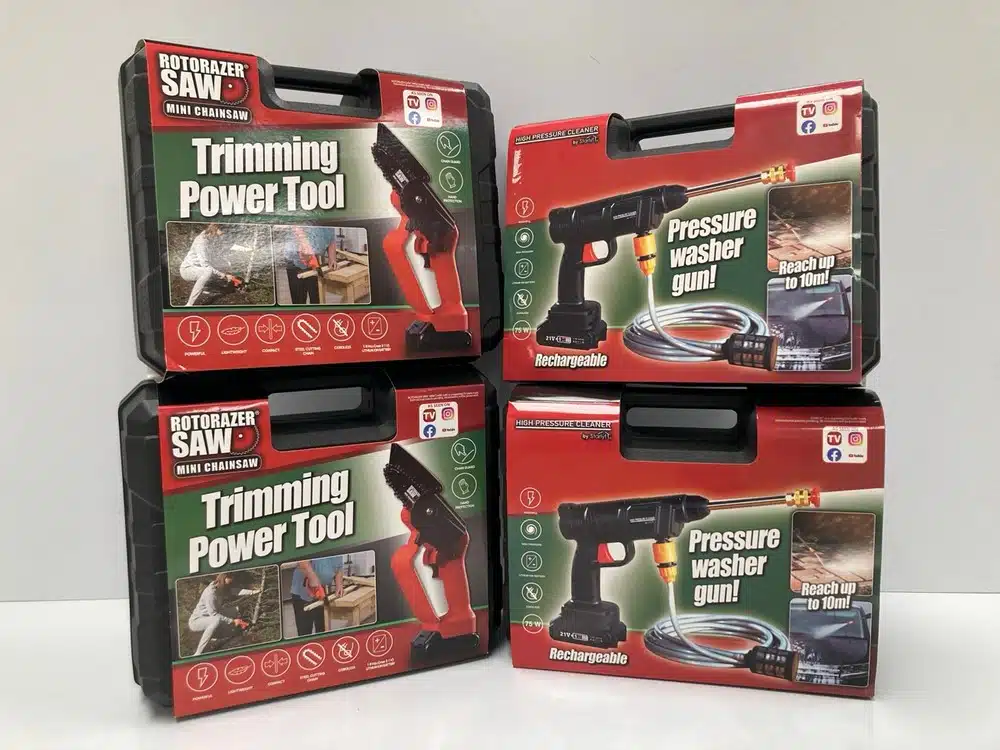 A selection of items to include coffee machines, vacuums, power tools, lawn mowers, air fryers, footwear, child car seats [...]