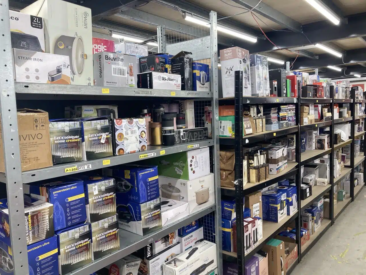 Retail returns, display items and surplus stock, including a wide variety of electrical appliances such as DELONGHI, MELITTA [...]