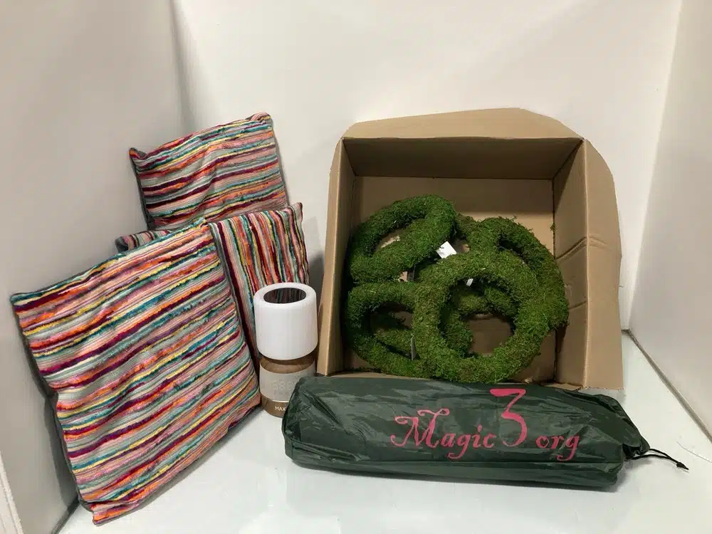 A selection of items to include home décor, lawn mowers, air fryers, tableware, clothing, lighting, jewellery, vacuums, monitors. [...]