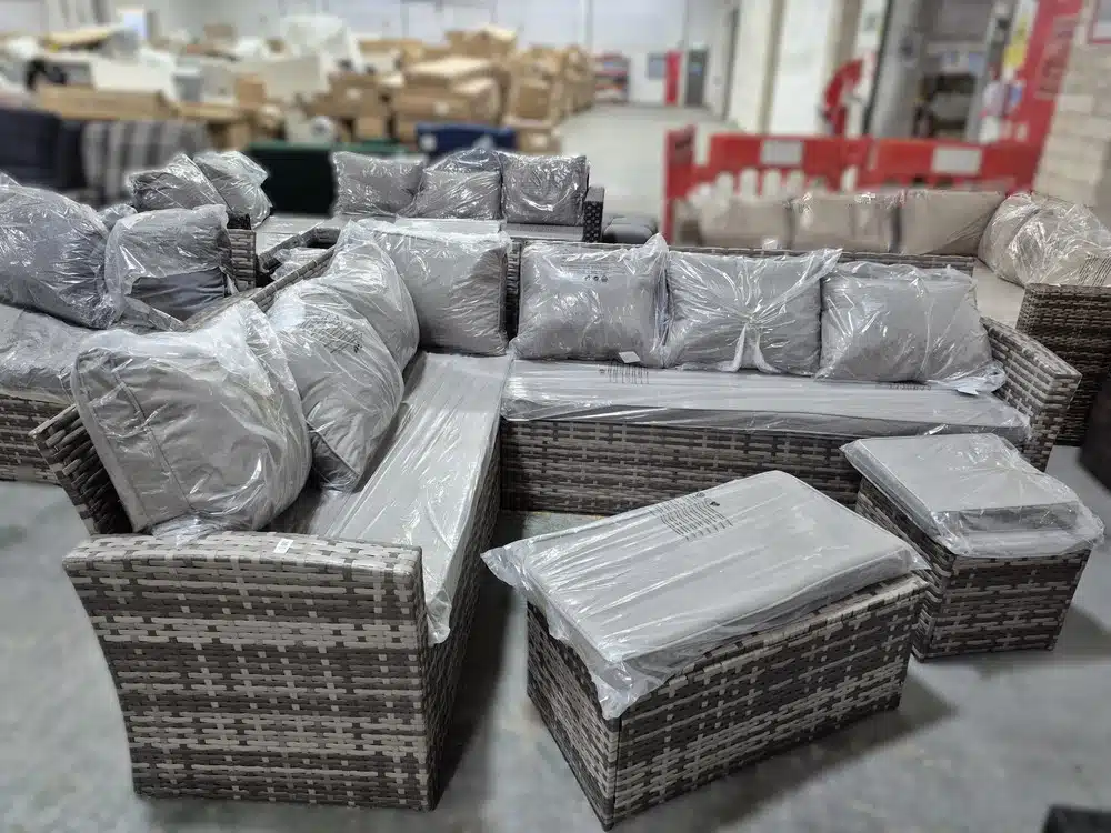 Retail returns, display items and surplus stock, including a wide range of garden furniture, armchairs, sofas [...]