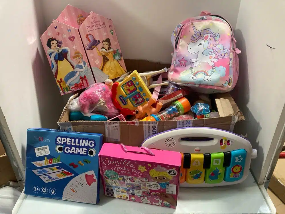A selection of items to include hair styling, footwear, clothing, toys, coffee machines, cycles, scooters, pet food, bags [...]