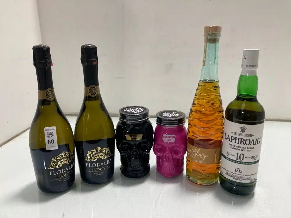 A selection of alcohol to include champagne, wines, beers and spirits. [...]