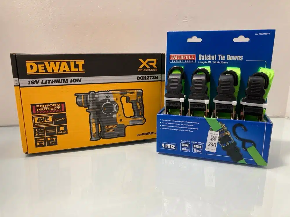 A selection of items to include power tools, footwear, clothing, paintings, toys, vacuums, bedding, coffee machines, binoculars [...]